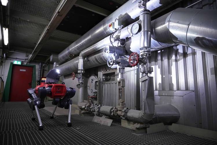 Robodog ANYmal kam im Rahmen eines Pilotprojektes im Kesselhaus des MHKW zum Einsatz, in dem es sehr laut und sehr heiß ist. Er inspizierte Anlagen, machte Fotos- und Tonaufnahmen und las Messgeräte ab. Alle Daten leitete der Robodog digital an seine „Herrchen“ weiter. „Der Einsatz im Kesselhaus ist für die Mitarbeiter sehr belastend. Wir könnten das künftig durch den digitalen Kollegen effektiv vermeiden“, sagt Entega-Vorstand Andreas Niedermaier.