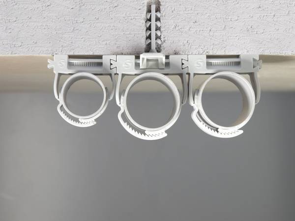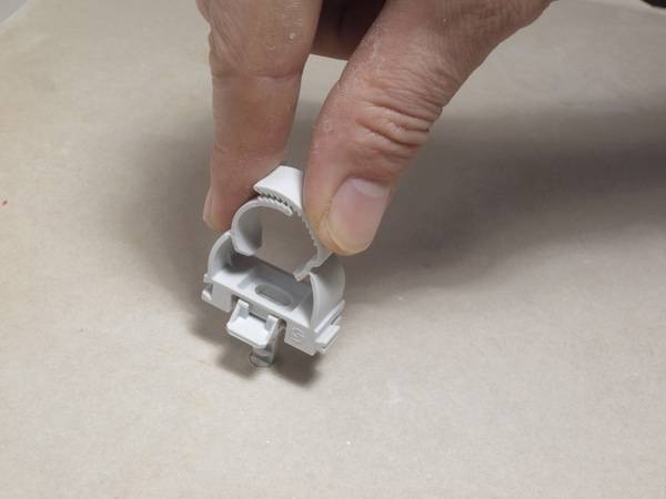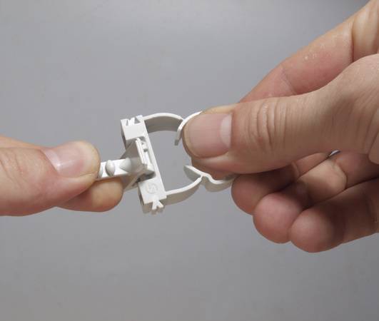 Genauso leicht kann der Clip auch wieder geöffnet werden. Durch die beidseitigen Andockstellen ist das System außerdem beliebig erweiterbar und Schellen in bis zu fünf unterschiedlichen Größen können platzsparend kombiniert werden.