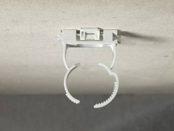 Der FC Flexi-Clip fasst Rohre mit einem Durchmesser von 16 bis 50 mm. Jeder Clip ist für mindestens zwei Rohrdimensionen verwendbar. So kann der Monteur z.B. mit den zwei Schellengrößen FC 16-20 und FC 25-32 die gängisten vier Rohrdimensionen abdecken. Für eine schnelle Verlegung lassen sich die Rohre millimetergenau in der Schelle vorfixieren. Anschließend reicht ein Daumendruck, um die Schelle inklusive Absturzsicherung zu schließen. Das wiederum sorgt für eine Zeitersparnis von bis zu 60%.