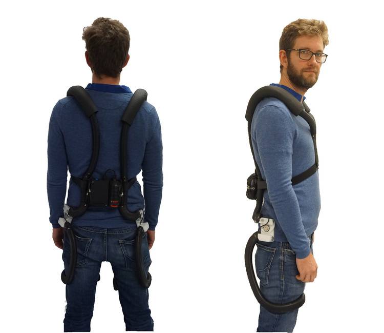 Kunden können künftig zwischen einer rein sensorischen Textilweste und einer Variante mit Kraftunterstützung wählen. Eine weitere aktuelle Systemvariante mit Rücken- und Hüftunterstützung wurde mit einer miminal nötigen Orthesenbügel-Auflagefläche am Körper konzipiert. Durch ein arretierbares seitliches Hüftgelenk an der Weste lässt sich die Kraftübertragung vom Rücken in die Beine ein- und ausschalten. Dieser Mechanismus ermöglicht wechselnde Tätigkeiten im Stehen und Sitzen.