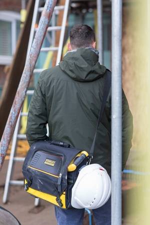 Ohne Laptop zum Kunden oder auf Montage - das ist für viele Handwerker inzwischen undenkbar. Gut, wenn der Rechner auch auf staubigen Baustellen, im Transporter oder draußen bei Regen immer geschützt ist. Für solche Bedingungen ist die neue Stanley Fatmax Laptoptasche FMST1-80149 konzipiert. Sie ist aus robustem, wasserabweisendem 600-Denier-Nylon gefertigt und hat vier Kunststofffüße - so kann sie auch auf feuchtem Boden abgestellt werden. Ihre Klappe lässt sich für bestmöglichen Zugriff und Überblick nach vorne öffnen. Im gepolsterten Innenfach finden die meisten handelsüblichen Laptops (bis 14‘‘ bzw. 26 x 36 cm) Platz. Die Laptoptasche lässt sich wahlweise am ergonomischen Tragegriff oder mittels der abnehmbaren Schultergurte tragen und wird mit einem extra Gurt geliefert, mit dem sie sich am Rollkoffer FMST1-80148 befestigen lässt.