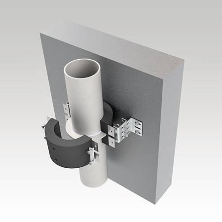 Die vier Dämmschalen, die das Rohr fest umschließen, sind an keiner Stelle unterbrochen und bewirken eine vollständige thermische Entkopplung. So wird vermieden, dass Kondensat an der Befestigungsoberfläche zu Korrosion oder zu einer Mehrbelastung durch Eisbildung auf oder unter der Dämmung führt. Auch die Einbindung der Schelle in eine Streckendämmung ist einfach zu bewerkstelligen, da die Seitenflächen der Dämmschalen mit der angrenzenden Rohrdämmung einfach zu verkleben sind. |