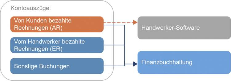 Die Zahlungsdaten werden wie die Aus- und Eingangsrechnungen per Schnittstelle an das Steuerbüro übergeben. Die Verschiebung der Arbeit vom Steuerbüro in den Handwerksbetrieb rechtfertigt ein Gespräch mit dem Steuerberater über eine Reduzierung seiner Gebühren.