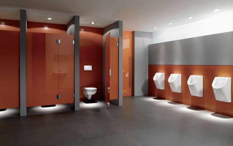So greifen Planer bei vandalismusgefährdeten Sanitärräumen oft auf robuste, vandalensichere Produkte zurück. Hierzu gehören beispielsweise WCs mit eingebrannten Sitzbacken oder verdeckt liegende Steuerungselemente bei Urinalen und Armaturen.