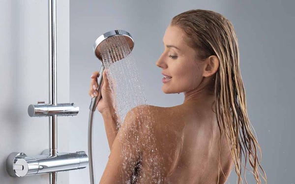 Auch die Kopfbrausen sind dank des reduzierten Designs und der weichen Silikon-Noppen an den Wasserdüsen durch einfaches Wischen zu reinigen. Ein Nachtropfen verhindert das spezielle Dropcontrol-System: Nach dem Duschvorgang wird Luft in die Wasserdüsen geleitet, das Restwasser im Duschkopf läuft rückstandsfrei aus. Die Vorteile liegen auf der Hand: Keine Wassertropfen am Duschboden, weniger Kalkablagerungen im Duschkopf. Und bei einem neuen Duschvorgang beginnt man das Duschen immer mit frischem Wasser.