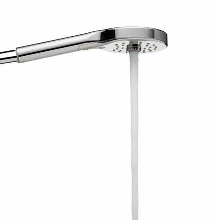 Die Handbrause Plus ist zusätzlich zum perlenden Regenstrahl mit einer speziellen Strahlart ausgestattet, dem Single-Strahl. Wie aus einem Schlauch fließt das Wasser in einem satten Einzelstrahl aus dem Brausekopf. Dieser Einzelstrahl eignet sich nicht nur für Massage- und Kneippanwendungen. Beim Abspülen der Duschgläser nach dem Duschen unterstützt dieser Strahl die Wirkung von Artclear Glas auf ideale Weise. Kleinere Sprühtropfen und damit auch Wasser- und Schmutzreste werden großflächig abgespült, die Duschgläser trocknen beinahe rückstandsfrei aus, die Reinigung wird stark erleichtert.