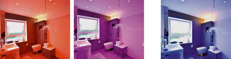 Ein warmer Rotton, ein kühles Blau oder eine beruhigende Grünnuance finden in dem Raum ideale Möglichkeiten, sich zu entfalten und die Ausstrahlung immer wieder neu maßgeblich zu beeinflussen. Diese Technik gipfelt in der Möglichkeit, biodynamisches Licht zu wählen, bei dem die Lichttemperatur passend zur Tageszeit automatisch eingestellt wird. Dieses natürliche und wohltuende Gefühl ist der Natur nachempfunden.