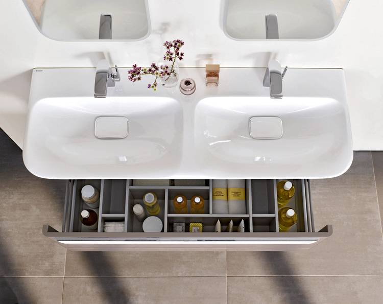 Wer bisher mit chaotischen Zuständen in Schubladen und Schränken zu kämpfen hatte, für den können Regalfächer, Ordnungsboxen und Schubladeneinsätze die Lösung sein. Sie strukturieren die Auszüge im Waschtischunterschrank oder die Regalfächer im Seiten- und Hochschrank. Die voneinander abgetrennten Fächer erleichtern es dem Nutzer, den Überblick zu bewahren und das Wichtigste immer in Reichweite zu behalten. Kosmetikartikel, Make-up oder Schmuck haben so ihren festen Platz ebenso wie Handtücher, Pflege- und Reinigungsmittel. Für Familien bietet die räumliche Aufteilung des Stauraums einen zusätzlichen Vorteil: Jedes Familienmitglied erhält seinen eigenen Bereich – Streit unter Kindern um den besten Platz ist dann kein Thema mehr.