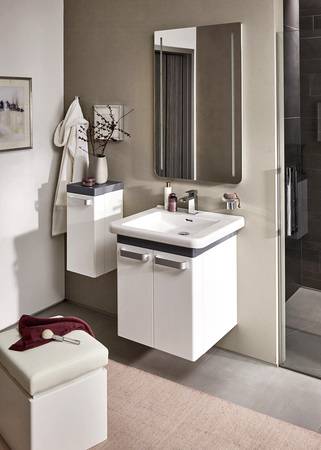 Vom Gästebad über das Single- und Familienbad bis hin zum Mehrgenerationenbad – in der Regel ist Stauraum ein knappes Gut: Badserien, z.B. von Geberit, zeichnen sich durch unterschiedliche Schrankelemente, Regale, Möbelauszüge und flexible Ablageflächen aus und bieten Gestaltungsfreiheit für jedes Budget. Als modulare Elemente können sie nach Bedarf miteinander kombiniert werden. In passenden Breiten, Tiefen und Höhen lassen sich damit Bäder aller Größen ausstatten – sogar kleine Gäste-WCs: Denn im Sortiment sind auch Möbel und Keramiken in kompakter Form mit geringer Ausladung und Ecklösungen, die wenig Platz benötigen.