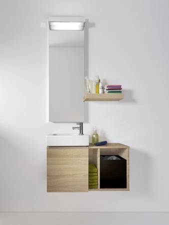 Im Bad werden feuchtigkeitsbeständige Materialien für Möbel eingesetzt. Insbesondere am Waschplatz dürfen Wasserspritzer und feuchte Stellen Seiten- oder Unterschränken nichts anhaben. Für den Einsatz in feuchten Räumen sind P3-Platten nach DIN EN 312 geeignet. Sie bestehen aus dreilagig angeordneten und harzgebundenen Holzspänen, die unter hohem Druck und Hitze verpresst werden. Die Platten lassen sich gut verarbeiten, bieten eine hohe Stabilität und weisen geringe Quelleigenschaften auf. Mit Folie beschichtet, lackiert oder furniert – unterschiedliche Oberflächenausprägungen machen den Werkstoff wandlungsfähig.