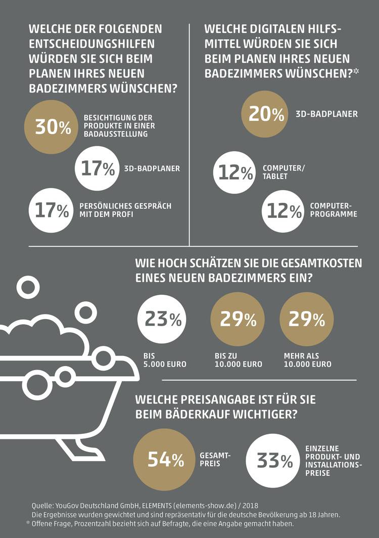 Welche Form der Unterstützung sich Deutschlands Endkunden bei der Planung eines neuen Bads wünschen, das hat die repräsentative Umfrage des Marktforschungsinstituts YouGov im Auftrag von Elements ermittelt.
