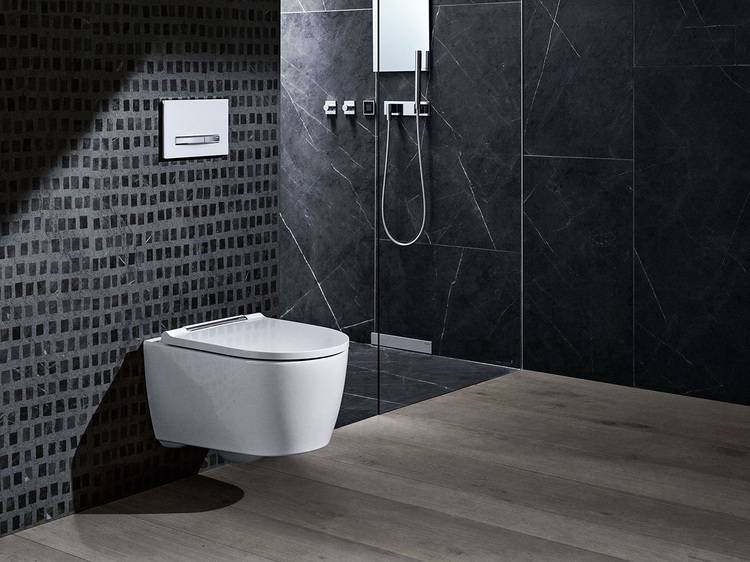 Gleichermaßen sind schmale Silhouetten beim (Dusch-)WC gefragt, hauptsächlich um ihm die Dominanz im Raum zu nehmen. Durch eine ausgefeilte Befestigungstechnik verschwinden außen alle Schrauben. Innen setzt man auf spülrandlose Konstruktion, Asymmetrie sowie einen nunmehr spiralförmigen Wasserstrom. Der soll für eine besonders gründliche Ausspülung sorgen und obendrein leise sein.