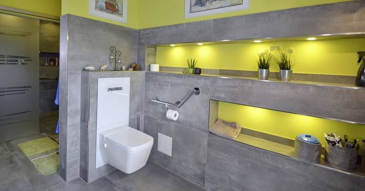 - Wände stabil ausgebildet, um auch später Stützgriffe anbringen zu können