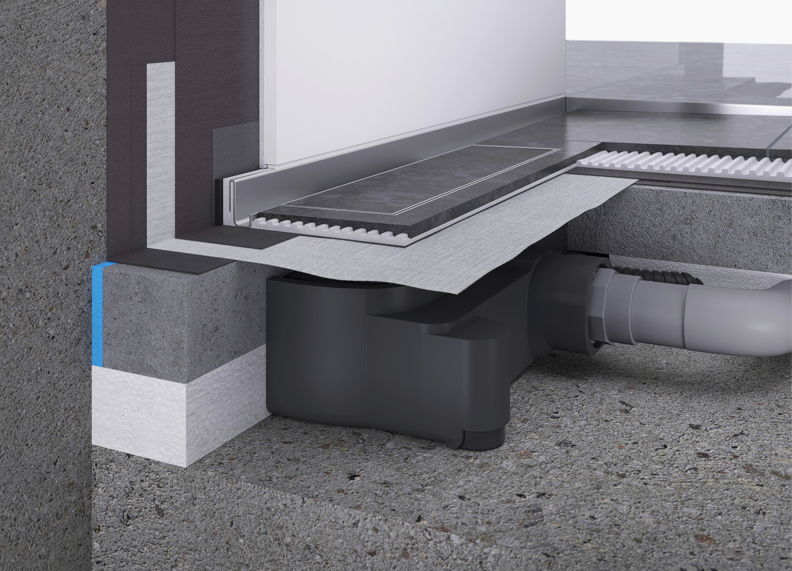 Jung Pumpen hat eine extrem flache Bodenablaufpumpe entwickelt, die das Duschabwasser sehr leise in die vorhandene Abgangsleitung pumpt. Das Design der Duschrinne wurde von dem Arnsberger Entwässerungsspezialisten Dallmer realisiert und erfüllt den Wunsch nach individuellen und hochwertigen Duschwelten. Auch die langjährigen Erfahrungen von Dallmer im Bereich der Abdichtung gemäß DIN 18534 sind in die Entwicklung eingeflossen.