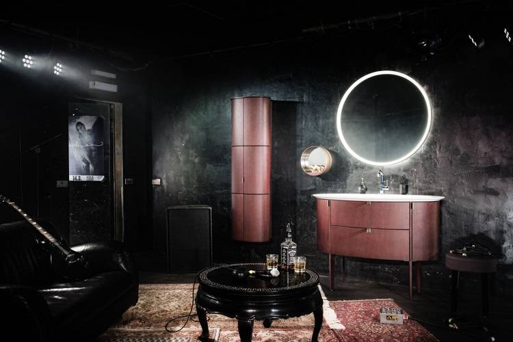 Ergänzt wird die Kollektion durch einen halbhohen, zweitürigen Schrank mit geradem Wandabschluss und Glaseinlegeböden (Höhe 1.350 mm, Tiefe 360 mm, Breite 460 mm) sowie einem runden Ablagetisch (Höhe 450 mm, Durchmesser 500 mm) mit einer in Quarz Metallic gerahmten Ablagefläche aus verspiegeltem Rauchglas. Das Waschplatzensemble von Diva 2.0 ist mit runden Leuchtspiegeln (Korpus in Quarz Metallic) in zwei Größen (Durchmesser 500 mm oder 900 mm, Tiefe jeweils 60 mm) mit umlaufendem LED-Lichtrahmen zu ergänzen, die auch die Wand mit schönem indirekten Licht bestreichen. Zusammen mit einer Spiegelablage (Durchmesser 300 mm, Tiefe 110 mm) samt integrierter Ablage in der gewählten Frontfarbe laden die diversen runden Wandelemente zu spielerischen Kombinationen ein.
