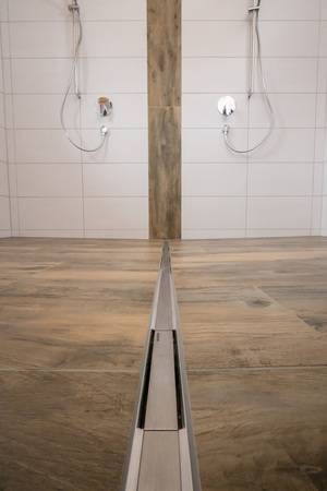 Die Keramiken der Serie Smyle Square sind außerdem mit der speziellen Spezialglasur KeraTect versehen, die eine besonders einfache Reinigung ermöglicht. Für die bodenebenen Duschen in beiden Badbereichen wählten Bauherr und Installateur die Duschrinne CleanLine80, die neben einer ansprechenden, cleanen Optik ebenfalls durch Reinigungsfreundlichkeit überzeugt: Der integrierte Kammeinsatz kann ganz einfach entfernt und gereinigt werden – für den Inhaber ein echter Pluspunkt.