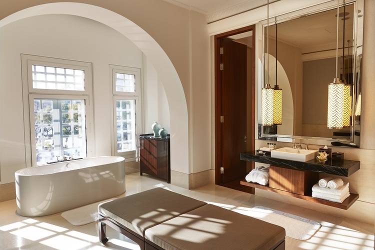 Eine exklusive Ausstattung und ein Höchstmaß an Komfort finden sich auch in den Hotelbädern des Capitol Kempinski Hotel Singapore. Das Meisterstück Centro Duo Oval bildet mit seiner puristischen Eleganz einen spannenden Kontrast zur opulenten Badarchitektur und lädt die Gäste zum luxuriösen Entspannungsbad ein. Das freistehende Wannenmodell aus Kaldewei Stahl-Email zeichnet sich durch seine ästhetische Formensprache und einzigartige Materialeigenschaften aus: Sowohl die Badewanne als auch die Verkleidung sind vollständig aus Stahl-Email gefertigt.