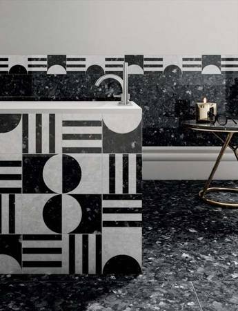 Ceramiche Piemme rundet diese Vielfalt mit den geometrischen Designs des Dekors Opulence Balance mit Intarsienoptik ab. Sie eignen sich für die Verkleidung von Wänden, als Badewannenverkleidung oder für andere Oberflächen im Badezimmer.