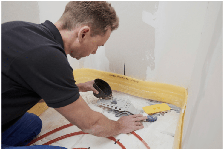 Wird die Duschrinne direkt auf dem Rohfußboden oder im Estrich fixiert? Das beeinflusst die Wahl des entsprechenden Montagematerials.