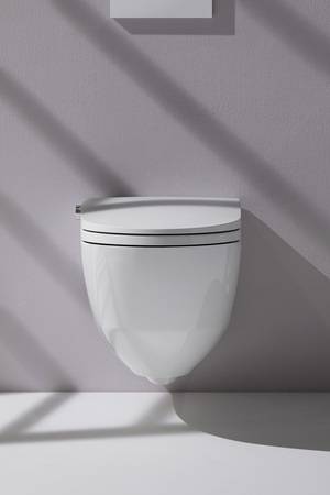 Von der Schweizer Badmarke Laufen ist das Dusch-WC Cleanet Riva für rund 4000 Euro erhältlich. Es legt einen Schwerpunkt auf umfängliche Hygiene und Sauberkeit sowie intuitive Bedienung. Denn die Schweizer sagen: Hygiene ist ganzheitlich zu betrachten und beginnt nicht erst beim Sauberspülen des Hinterteils – das hier mit viel Wasser erfolgt, um gründliche Ergebnisse zu erzielen. Von außen betrachtet unterscheidet sich das Cleanet Riva nicht von einem klassischen Design-WC, lediglich ein Edelstahl-Drehknopf am WC-Sitz zeigt die zusätzliche Funktionalität an und bietet eine einfache Bedienung, mit der auch ältere Menschen gut zurechtkommen.