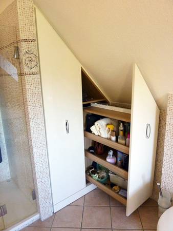 - Auf die Zugänglichkeit und Bedienbarkeit von Möbeln unter Dachschrägen achten.