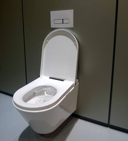 Mit Axent präsentiert die chinesische Axent-Gruppe ein Dusch-WC, das von außen wie ein gewöhnliches, wandhängendes WC aussieht. Als Funktionen bietet es Gesäß- & Feminine-Wash, Warmluft-Trocknung, Nachtlicht, VACUUM V FLUSH, Easy Clean, automatisches Spülen, Fernbedienung und eine Sitzheizung. Das WC hat einen Wandabstand von 305mm, ist jedoch auch mit 400mm Wandabstand (E102-0102) erhältlich. Das von Matteo Thun entworfene WC soll für 1.700 Euro zu haben sein.