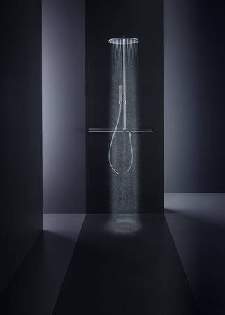 Die kreisförmige Kopfbrause 350, die ShowerPipe 800 mit dem dazugehörigen Thermostat 800, die rechteckigen Kopfbrausen 250 / 580 und 460 / 300 mit dem Thermostatmodul Select entstanden in Zusammenarbeit mit Phoenix Design aus Stuttgart.