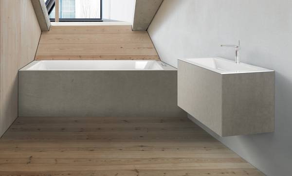 Erhältlich sind Badewanne und Waschtisch in den Farben Ivory (Beige), Moss (Grün), Carbon (Anthrazit) und Elephant (Grau meliert). Der Funktionsstoff selbst ist extrem widerstandsfähig, pflegeleicht sowie wasser-, schimmel- und klimaresistent und hat sich bei Outdoormöbeln bewährt.