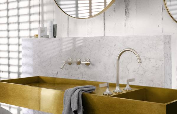 Stilbildend sind dabei die Konturen und die überhöhten Proportionen im Goldenen Schnitt der Armaturen. Sonderoberflächen (Chrom, Gold, Black) verleihen dem Sortiment mit über 70 Produkten für Waschtisch, Dusche und Badewanne eine zusätzliche Strahlkraft.