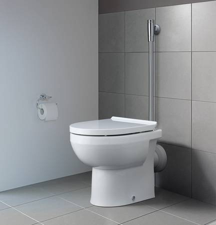 Das neue Stand-WC DuraStyle Basic Rimless ist als Variante mit waagrechtem Abgang (370 x 480 mm) oder mit senkrechtem Abgang (370 x 560 mm) erhältlich. Beide Modelle können alternativ mit Aufputzspülkasten oder Druckspüler benutzt werden.