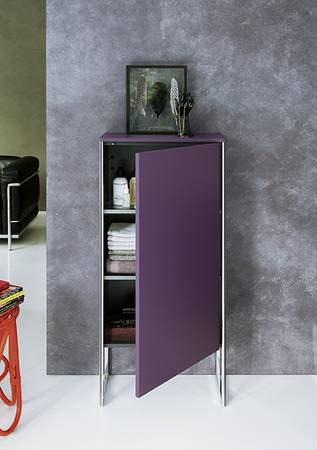 Drei neue Möbeloberflächen – Lichtblau Matt, Betongrau Matt und Aubergine Seidenmatt - sowie die Dekoroberfläche Leinen ergänzen die breite Farbpalette. Insgesamt stehen 28 Möbeloberflächen in Dekor Matt oder Lack, Seidenmatt oder Hochglanz zur Verfügung. Durch die Wahl der Konsolenplatte in einer der Korpusfarben oder zusätzlich in Nussbaum massiv ermöglicht XSquare ganz individuelle Farbkombinationen. Durch die bicolore oder sogar tricolore Farbgebung in der Kombination zwischen Lackoberfläche, Chromprofil und der Konsolenplatte entstehen neue Kontraste und hochwertige Designoptionen. Grifflose Fronten mit Push-to-Open Technik unterstreichen das Gesamtbild.