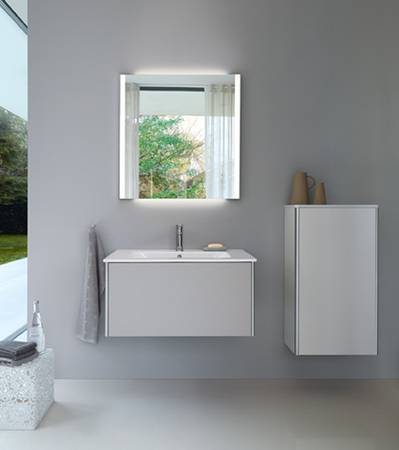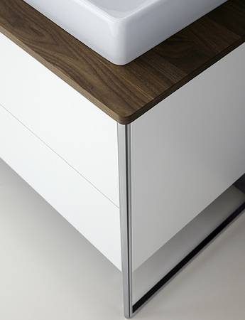 Duravit hat mit Designer Kurt Merki Jr. eine Möbelserie kreiert, die auf das Design der modernen DuraSquare Waschtische abgestimmt ist. Prägendes Designmerkmal ist ein Viertelkreisprofil in Chrom, welches das Möbel seitlich einrahmt. Bei der bodenstehenden Variante geht es nahtlos in ein Fußgestell über. In beiden Varianten bildet das Chromprofil einen akzentuierten Rahmen. XSquare ist vielfältig kombinierbar und passt zu den Keramikserien DuraSquare, Vero Air, ME by Starck und P3 Comforts.