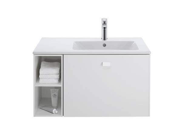 Die Möbelwaschtischunterbauten sind in bis zu fünf verschiedenen Breiten (400–1300 mm) verfügbar. Es lassen sich somit auch asymmetrische, halboffene Möbel kreieren. Für mehr gestalterische Freiheit ist die Möbelserie Brioso Teil des Universalkonsolenprogramms. Die Möbelkonsolen gibt es in zwei verschiedenen Stärken (30 und 45mm), jeweils variabel in der Breite sowie in zwei Tiefen. Sie sind mit Unterschränken in Breiten von 30 bis 80cm und Konsolenwaschtischunterbauten von 62 bis 100cm kombinierbar. Für alle Möbel werden alternativ ein Auszug oder zwei Schubkästen angeboten. Noch mehr Stauraum bieten der Hochschrank oder der Halbhochschrank in 420 oder 520mm Breite.