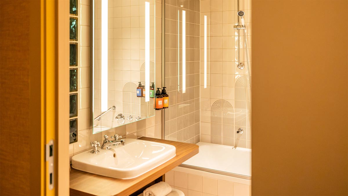 Hier wird selbst der Rückzugsort inszeniert: Die Badezimmer tragen den unverkennbaren Ostende-Stil und verwandeln alltägliche Routinen in stilvolle Erlebnisse. In allen 113 Zimmern sorgen klare Linien, angenehme Haptik und funktionale Eleganz für Komfort. Minimalistische D‑Neo‑WCs vom belgischen Designer Bertrand Lejoly, zeitlose Waschtische der Serie DuraStyle und nachhaltige Sustano‑Duschwannen aus recycelfähigem DuroCast Nature definieren Design und Nachhaltigkeit neu.