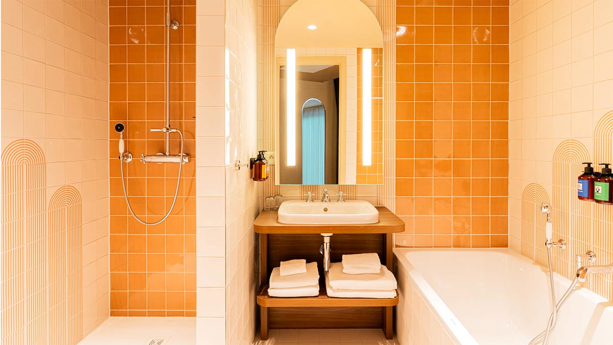 Für besondere Auszeiten bietet das The Ostendian thematisch gestaltete Zimmer, die jeweils ihre eigene kleine Welt eröffnen. Die „Red Light Suite“ mit integrierter Champagnerbar setzt auf Glamour und Extravaganz, während das Zen-inspirierte „Unwind“-Zimmer Ruhe, Harmonie und klare Formen in den Mittelpunkt stellt. Weitere Suiten überraschen mit luxuriösen Paiova-Whirlwannen von Duravit. Unterschiedliche Fliesenfarben, reizvolle Glanzoberflächen und sorgfältig aufeinander abgestimmte Materialien sorgen dafür, dass jedes Badezimmer einen eigenständigen Charakter erhält und sich bewusst vom restlichen Raum abhebt.