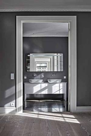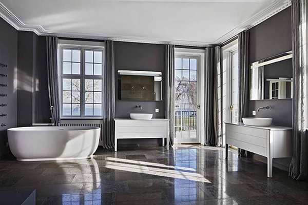 Die insgesamt 14 Bäder unterstreichen den exquisiten Stil des Objekts. Passend zum klassisch-modernen Interieur wurden sie komplett mit Produkten der Serie Luv ausgestattet: Ovale Aufsatzschalen, kombiniert mit Konsolentischen sowie prägnant geformte, ovale Badewannen.