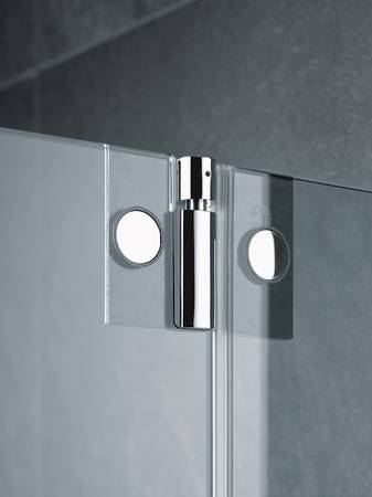 Die komfortable, nach innen und außen öffnende Pendeltür besitzt einen Hebe-Senk-Mechanismus für einen sanften Türschluss, auch bei bodenebenem Einbau. Die innen glasbündigen Beschläge lassen sich leicht reinigen. Die optionale KermiCLEAN Pflegeleicht-Beschichtung für Echtglas sorgt dafür, dass sich z.B. Wassertropfen, Seifenreste oder Schmutz gar nicht erst hartnäckig anlagern.