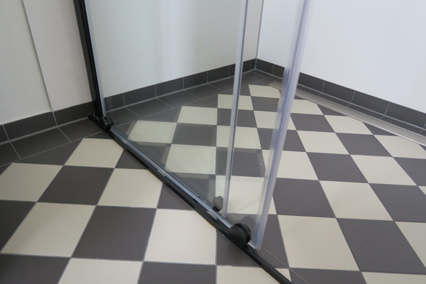 Für eine komfortable Türöffnung wird das Laufrollensystem aus Vollmaterial gefertigt. Oben gewährleistet der Stabilisator die Führung, er fixiert zugleich das feste und das bewegliche Glaselement. Er wird in einer Länge von 1.400 mm geliefert und bei der Installation auf das passende Maß gekürzt.