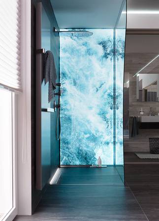 Die Firma Sprinz, seit 1886 versiert als Hersteller von Duschen, Glastüren und Trennwand-Systemen, bietet jetzt beim Fachgroßhändler Richter+Frenzel eine Neuentwicklung an: den UVDigitaldruck für die Rückwand der heimischen Duschkabine.