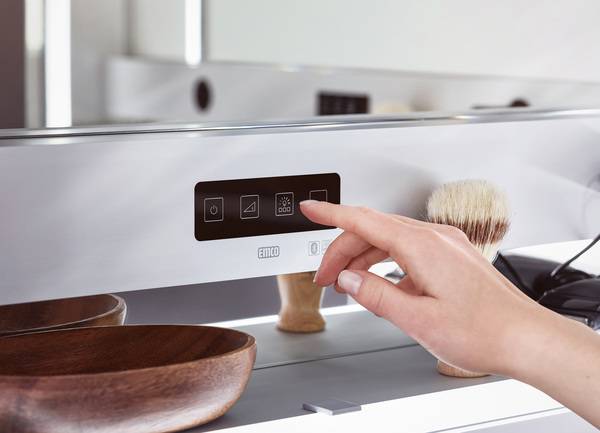 Die Versionen mit dem neuen Lichtsystem verfügen über ein Touch-Bedienfeld zum Ein- und Ausschalten der Beleuchtung, zur stufenlosen Regelung von Helligkeit und Farbtemperatur sowie zur Auswahl von Szenarien. Drei typische Badsituationen (Cosmetic, Energizing und Relaxing) sind dabei bereits voreingestellt, individuelle Lichtszenen können über die App hinzugefügt und jederzeit wieder abgerufen oder verändert werden. Bei den Modellen ohne emco light system können Lichtfarbe und stärke über zwei Taster eingestellt werden, auch das Dimmen der Beleuchtung ist darüber möglich.