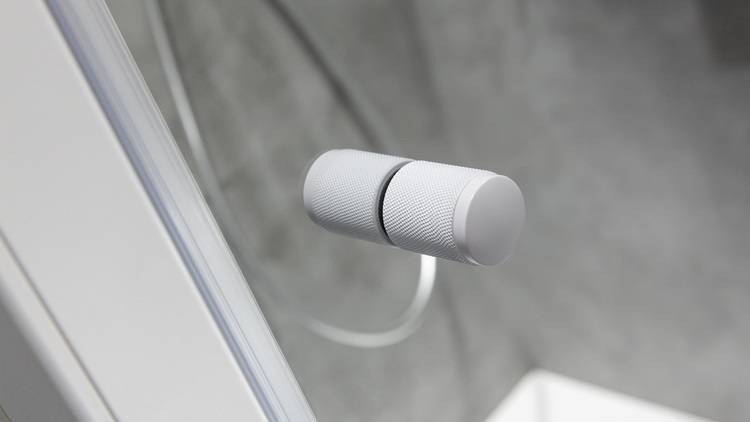 Die geradlinige Rahmenstruktur und der Türgriff mit gripoptimierter Rändelstruktur sollen der Duschkabine eine exklusive Optik verleihen. Die Glastür wird zwischen zwei von der Wand abgerückten Drehpunkten gelagert und eignet sich so auch für den Einsatz in kniffligen Badezimmern. Störende Heizkörper, Mauer- oder Fenstervorsprünge können umgangen werden. Eine Magnetschließleiste sorgt für ein sauberes und zuverlässiges Schließen der 6 mm Echtglastüren.