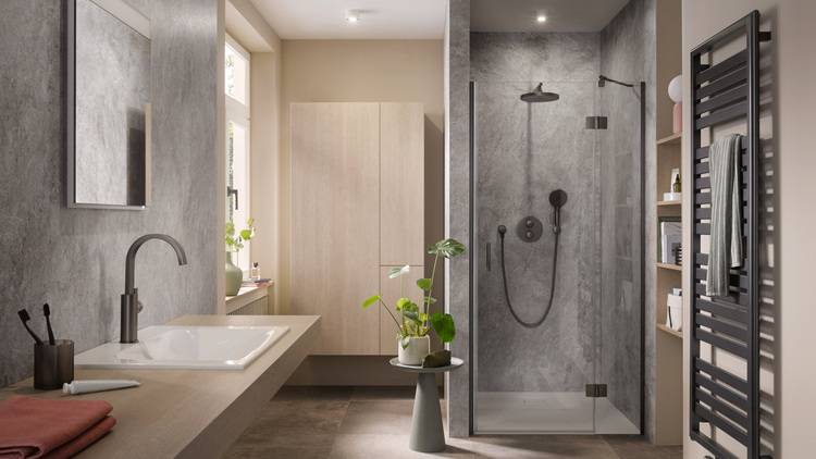 Die neuen Designs greifen aktuelle Wohntrends auf und interpretieren klassische Natursteine auf elegante Weise neu. Das Dekor „Naturstein, silbergrau“ wirkt klar und reduziert. Die Strukturoberfläche verleiht den harmonischen Grautönen Authentizität – für ein modernes, urbanes Baddesign.