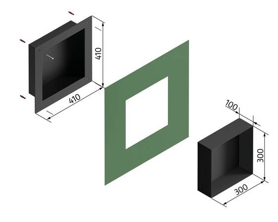 Mit der Wandbox und dem Abdichtvließ wird die geforderte Abdichtung nach DIN 18534 im Nassbereich realisiert. Die Wandeinbauboxen sind in den Größen 300 x 300 mm und 600 x 300 mm, jeweils 100 mm tief, erhältlich. Sie werden direkt in die Wand integriert und sind ideal für den Einsatz in Trockenbau- und Holzrahmenbauwänden geeignet.