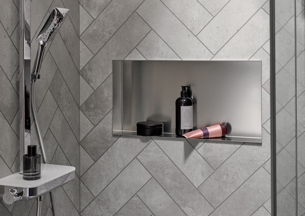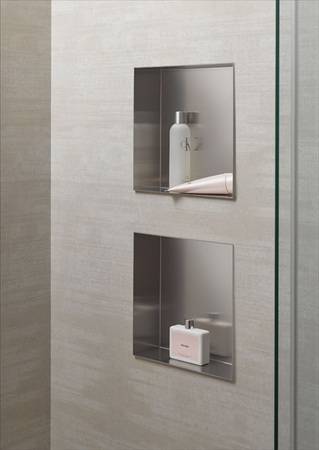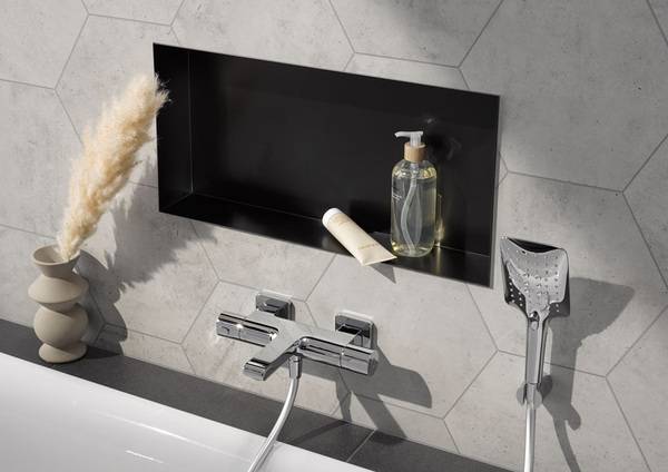 Die Wandeinbaubox sorgt nicht nur für Ordnung im Duschbereich, sie ist zudem auch noch in zeitlos modernen Oberflächen zu bekommen. Der Kunde hat hier die Auswahl zwischen dem Edelstahllook oder einem schicken Schwarz-matt.