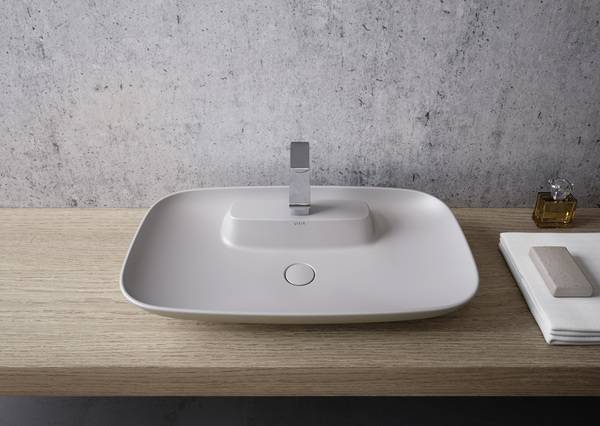 Welche gestalterischen Möglichkeiten die Saphirkeramik von Laufen bietet, zeigt die Kollektion Val aus der Feder des Münchner Designers Konstantin Grcic. Einfache, architektonische Linien, extrem schmale Kanten und Dünnwandigkeit sowie feine Oberflächenstrukturen oder semi-trockene Bereiche machen die Waschtische und Waschtisch-Schalen weltweit einzigartig. Zentraler Baustein ist der rechteckige Waschtisch, der als Unterbau-Version oder Aufsatzwaschtisch mit geschliffener Unterseite in Breiten von 45 bis neu 120 cm verfügbar ist. Neu im Sortiment ist auch ein kreisrunder, wandmontierter Waschtisch mit Armaturenbank entweder mit oder ohne Überlaufloch.
