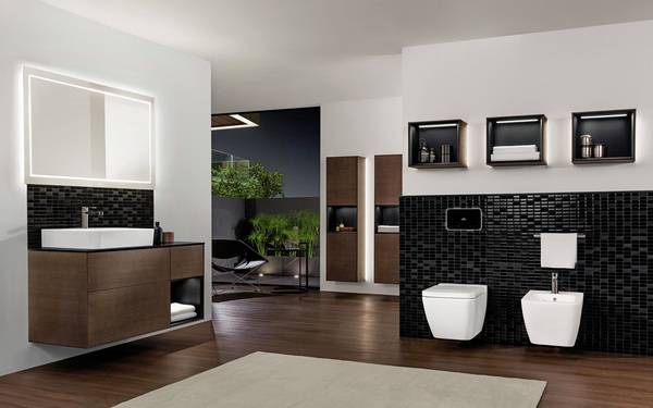 Die breite Auswahl an Möbeln mit zweifarbigen Oberflächen macht aus dem Bad eine Oase der Behaglichkeit. Die Badewannen sind auf die Keramikprodukte abgestimmt. Schmale Ränder und sanfte Formen schaffen einen harmonischen Gesamteindruck. Die Serie Connect Air vereint das Design des britischen Produktdesigners Robin Levien mit Funktionalität. So verfügen die WCs der Serie neben der besonders reinigungsfreundlichen randlosen Spültechnik auf Wunsch über die exklusive Spültechnologie AquaBlade. Diese garantiert hohe Spülleistung, einen niedrigen Geräuschpegel und eine bisher unerreichte Hygiene.