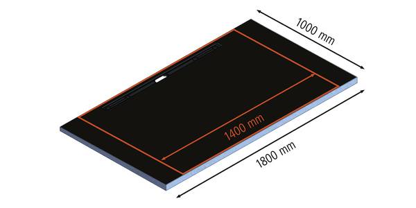 Die LINE XXL-Zuschnittboards verfügen über eine maximale Länge x Breite von 1000 x 1800 mm bzw. 1800 x 1000 mm. Die Boards können bei Installation bis minimal 703 x 1160 mm bzw. 970 x 760 mm individuell auf die Duschsituation zugeschnitten werden. Auch bei außergewöhnlichen Duschsituationen, wie zum Beispiel mit Ecken und Aussparungen, kann das Board direkt vor Ort millimetergenau angepasst werden. Eine langwierige und teure Maßanfertigung ist dadurch nicht notwendig. Die Boards sind ab Lager erhältlich.