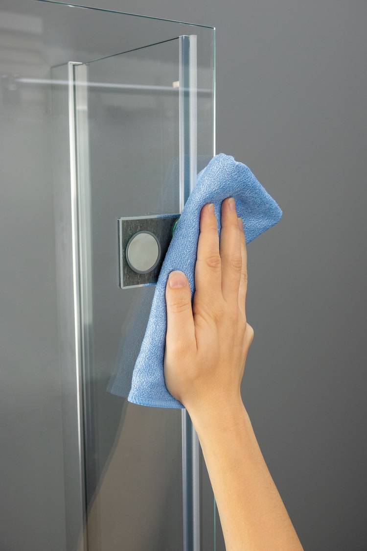 Für Kermi Echtglas-Duschkabinen wird ausschließlich Einscheiben-Sicherheitsglas zertifiziert nach der DIN-Norm EN 12150-1 verwendet. Damit die Kabinen lange glänzend bleiben, empfiehlt sich eine regelmäßige Reinigung nach dem Gebrauch. In der Reinigungs- und Wartungsanleitung, die jeder Kermi Duschkabine beiliegt, findet man alles Wissenswerte dazu.