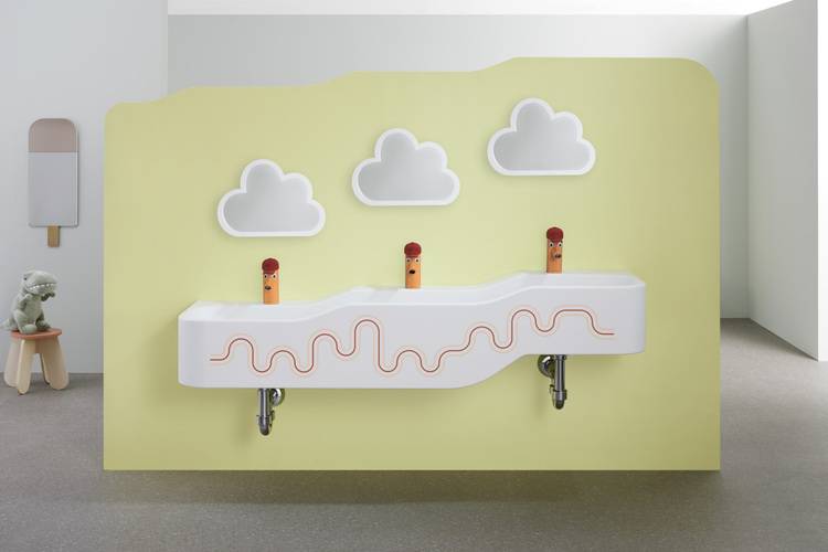 Verschiedene Dekore in trendigen Farben machen eine vielseitige Anpassung der Waschlandschaften an unterschiedliche Einrichtungs- und Farbkonzepte möglich. Kindgerecht gestaltete Armaturen mit automatischer Auslösung und Nutzererkennung oder manueller Bedienung im gleichen Farbspektrum ergänzen dies.
