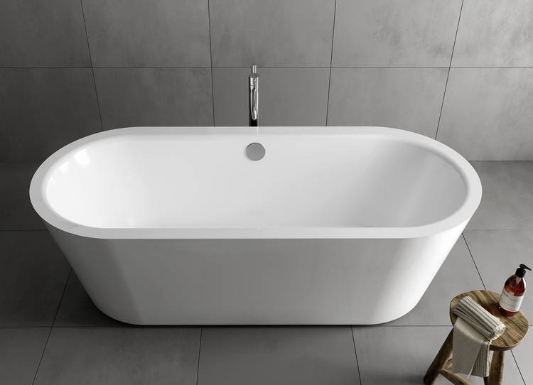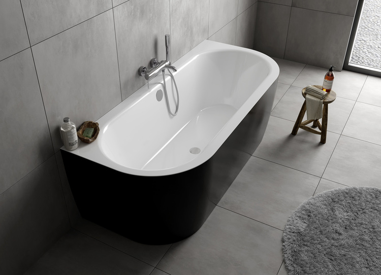Die in einer ergonomisch-ovalen Duo-Form mit großen Bodenflächen und Mittelablauf gestaltete Badewanne verfügt über einen nahtlosen Übergang zwischen Wannenrand und Schürze. Da sich hier weder Kalk noch Schmutz festsetzen können, ist die Wannenserie besonders pflegeleicht. Die wandstehende Lösung benötigt zudem für ihre Positionierung im Raum keine Ecke und lässt sich flexibel nach der bereits in der Wand installierten Armatur ausrichten. Bei einer Länge von 1.850 mm und einer Breite von 800 mm steht dem Badenden eine komfortable Tiefe von 480 mm zur Verfügung.